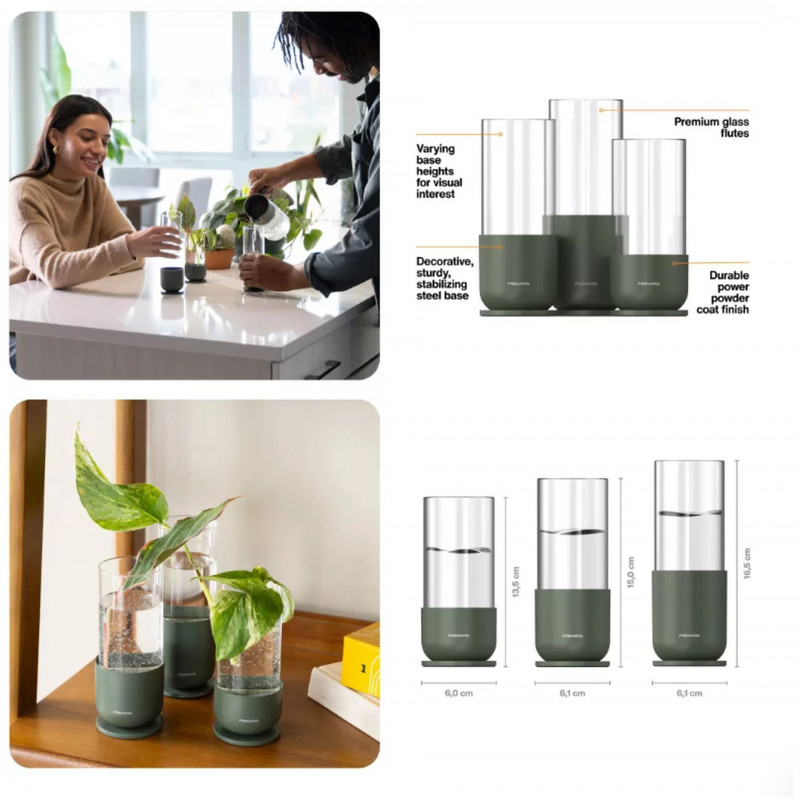 L’ensemble de multiplication des plantes Fiskars permet de faire enracinement de nouvelles plantes de maniere efficace et élégante. Cet ensemble de trois pieces transforme les boutures de vos plantes préférées en jeunes plants sains. L’association de verre de qualité supérieure et d’une base en métal stable constitue un outil fonctionnel pour les amateurs de plantes et un objet décoratif élégant pour votre intérieur.