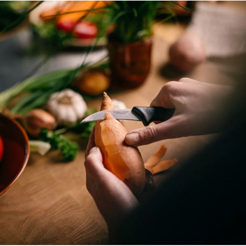 L’ensemble d’épluchage Fiskars Essential est un outil pratique et abordable pour toutes les cuisines. La série Essential comprend des couteaux, des ciseaux, des accessoires et des ustensiles – chaque produit est conçu pour un usage facile et efficace au quotidien. Cet ensemble est idéal pour tous ceux qui recherchent un équipement de base pour préparer fruits et légumes.