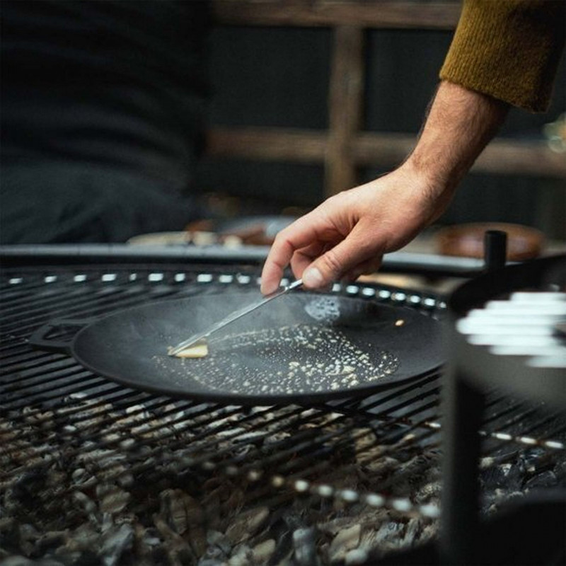 • Plaque en fonte résistante, idéale pour la cuisson des crepes, des poissons ou des légumes au barbecue ou sur un feu de bois