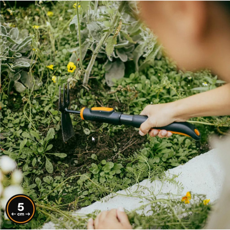 La Fiskars OneClick binette double face est un outil de jardin polyvalent conçu pour ameublir le sol et désherber sans changer d’outil. La combinaison d’une lame plate pour couper précisément les mauvaises herbes et d’une double pointe pour aérer les sols compactés permet un travail efficace meme dans les rangées étroites.