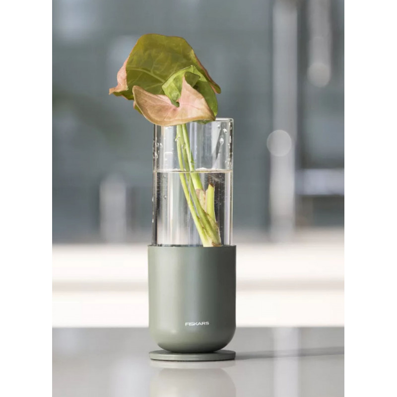 Set de multiplication Fiskars 1 pc permet de faire enraciner de nouvelles plantes de maniere stylée et efficace. Ce set transforme les boutures de vos plantes préférées en jeunes plantes saines. Le verre de qualité et la base métallique stable offrent un outil fonctionnel et un élément décoratif élégant.