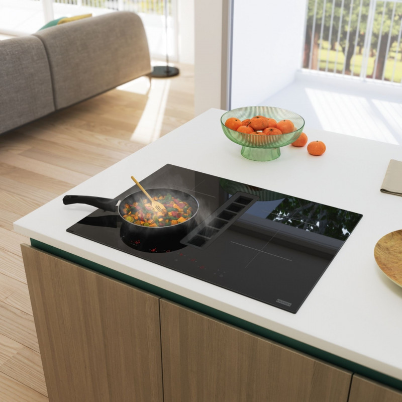 - Solution 2-en-1 : table induction avec hotte intégrée