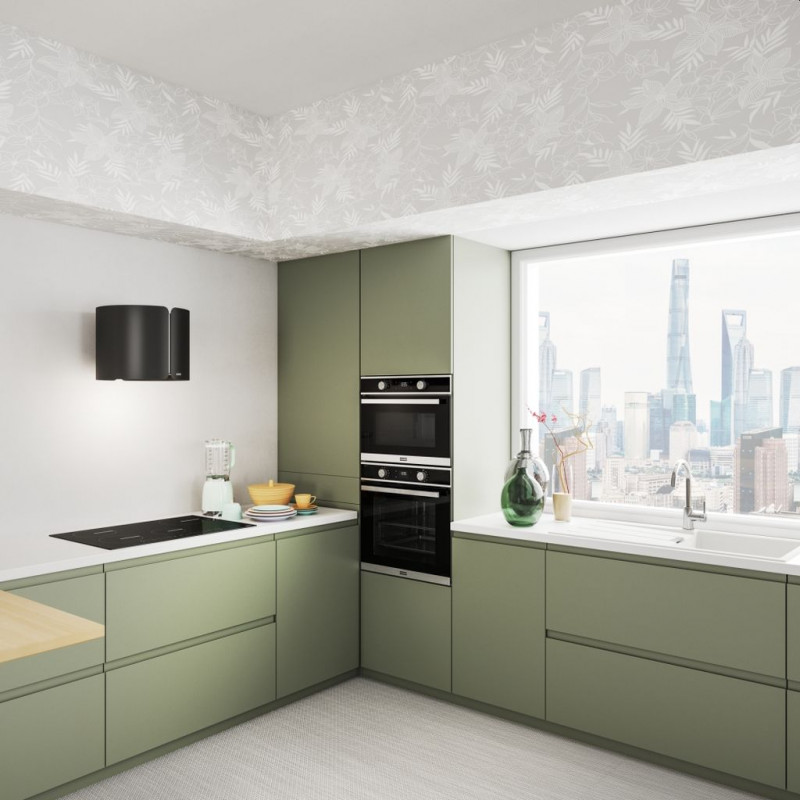 Hotte design SMART Murale 420mm noir mat, classe A, débit max 580/ int 740m3/h, niveau sonore mini 53dB(A)/maxi 66dB(A), commandes électroniques par touches,3 vitesses +int, 2 filtres charbon inclus, installation recyclage uniquement