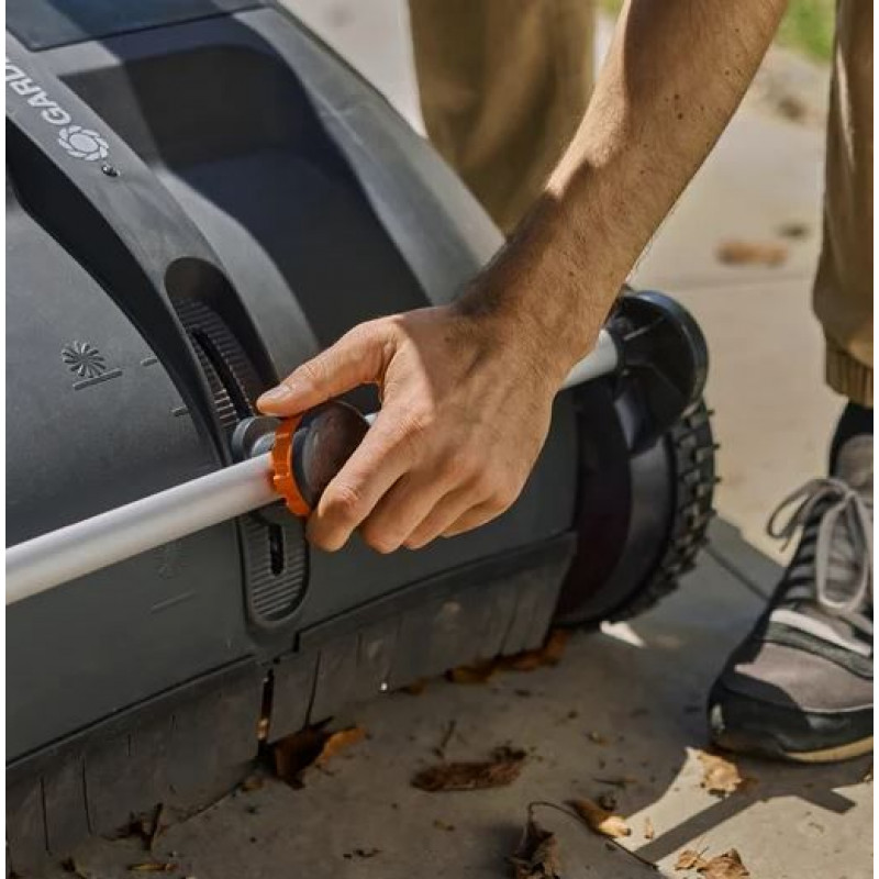 Sa conception légere et ses grandes roues assurent une excellente maniabilité, meme sur sol irrégulier ou humide. Le design ergonomique permet de ramasser feuilles et résidus de tonte en position debout, réduisant ainsi les efforts et la fatigue. Livré partiellement monté, il est simple a assembler et peut etre rangé verticalement apres utilisation.