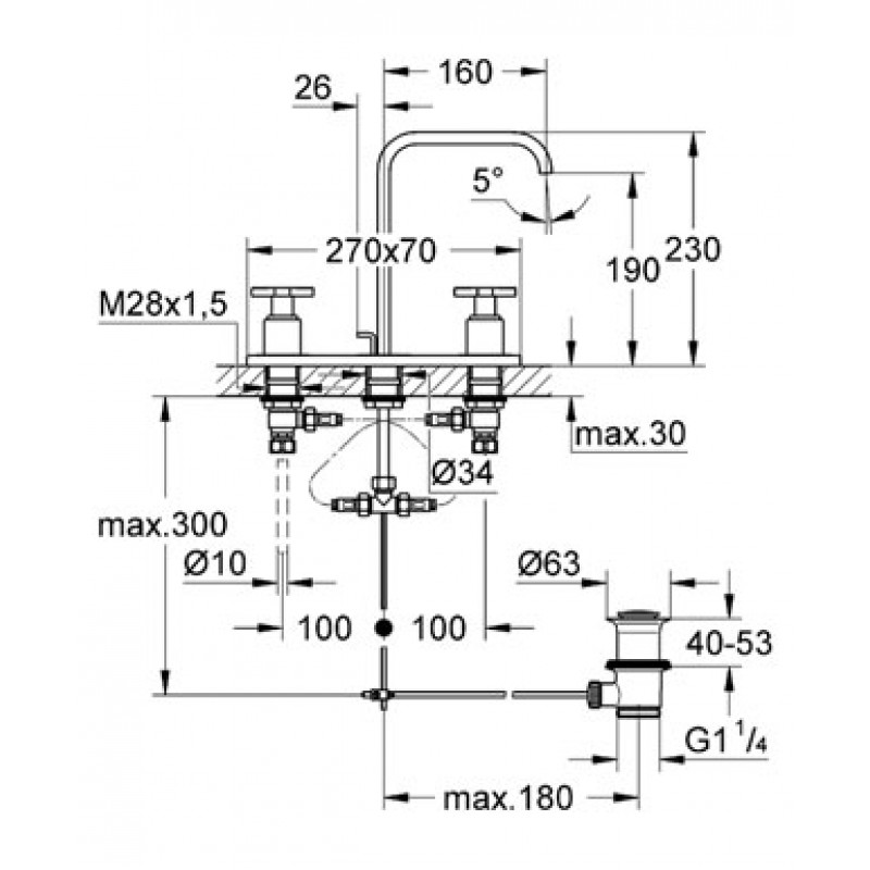 Mélangeur 3 trous 1/2" Lavabo Taille M