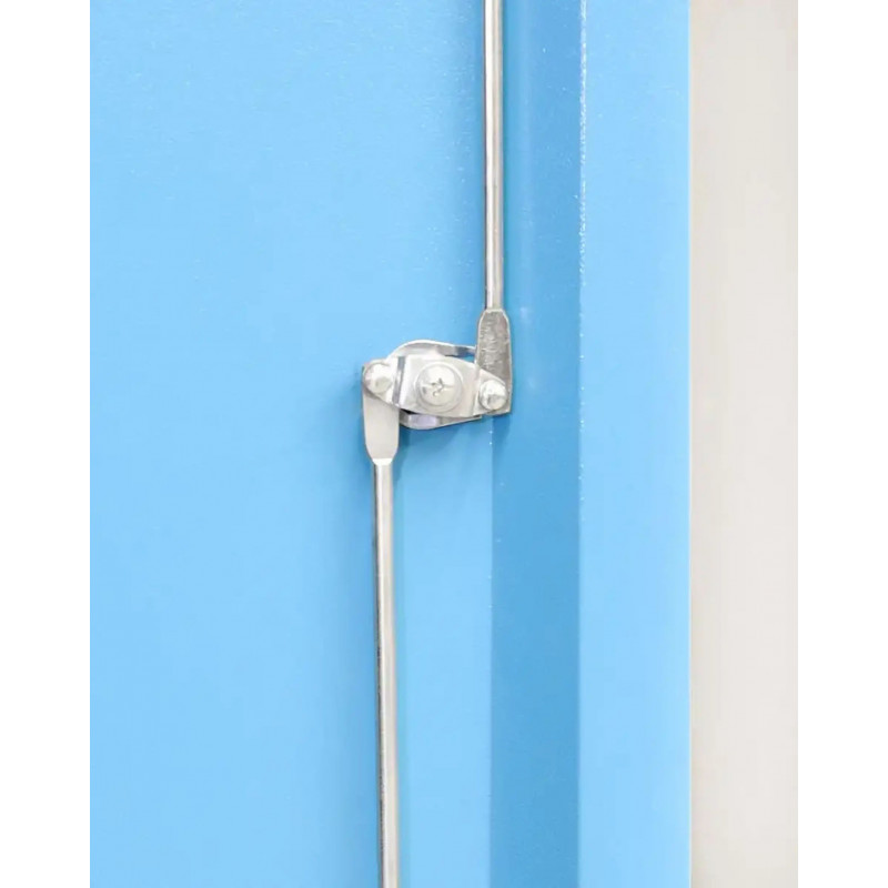 La sécurité est assurée par un systeme de verrouillage central sur deux portes ainsi qu’un verrouillage a deux points. L’armoire est livrée non assemblée pour faciliter le transport et le montage.
