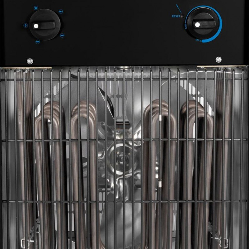 GÜDE GH 15 EV (85014) est un chauffage électrique professionnel conçu pour chauffer rapidement et efficacement les ateliers, entrepôts, halls et espaces de travail extérieurs. Avec une puissance élevée de 15 kW et trois niveaux de chauffage (5 / 10 / 15 kW), il offre une régulation flexible de la chaleur en fonction des besoins actuels.