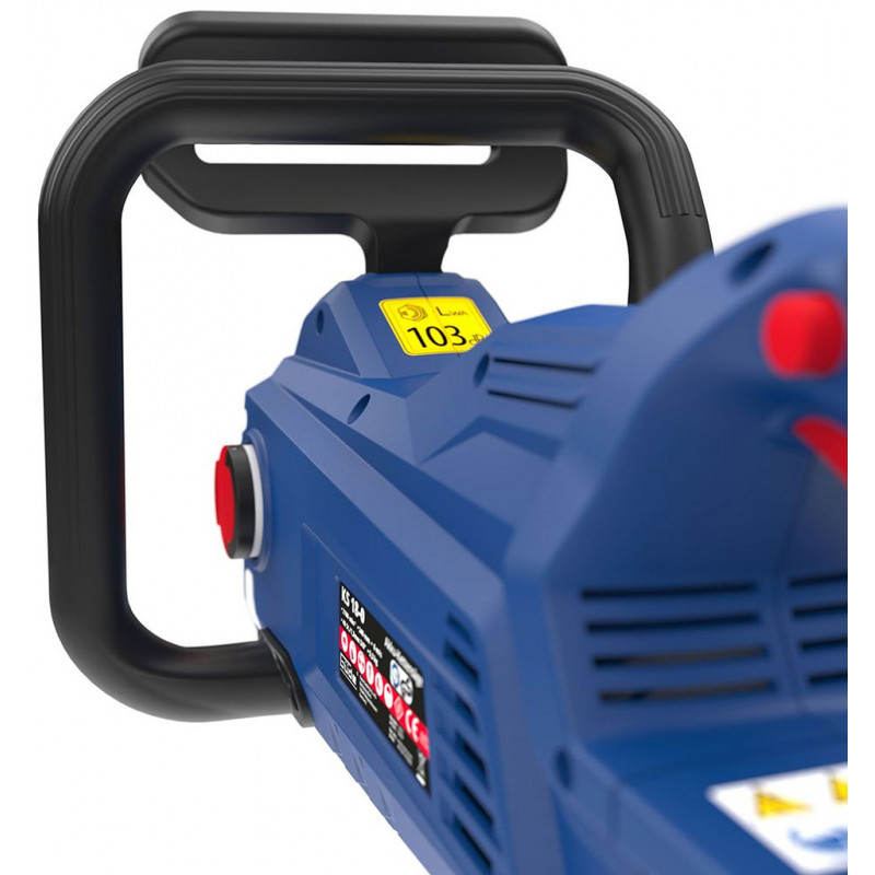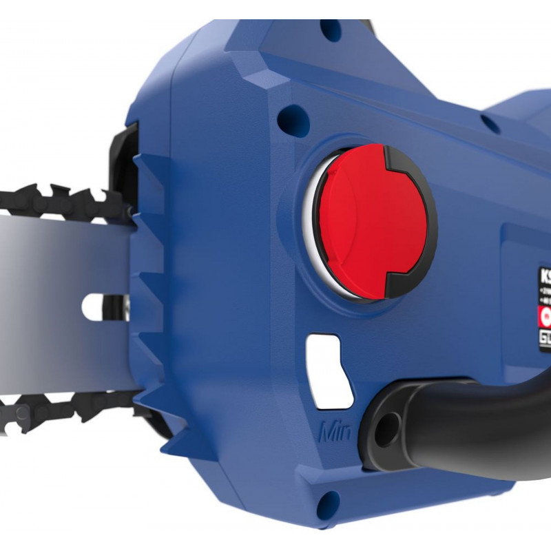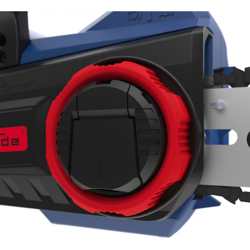 Pour la sécurité, l’appareil dispose d’un frein de chaîne électrique/mécanique ainsi que d’un systeme de tension rapide sans outil. Un protege-guide est inclus pour un stockage sécurisé.