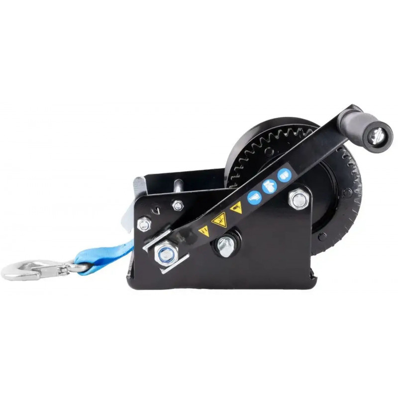 L’appareil est équipé d’une sangle en polyester de 8 metres offrant une grande portée lors des opérations de traction. La sécurité est renforcée par un crochet de charge avec ouverture de sécurité et un levier de verrouillage empechant tout déclenchement accidentel.