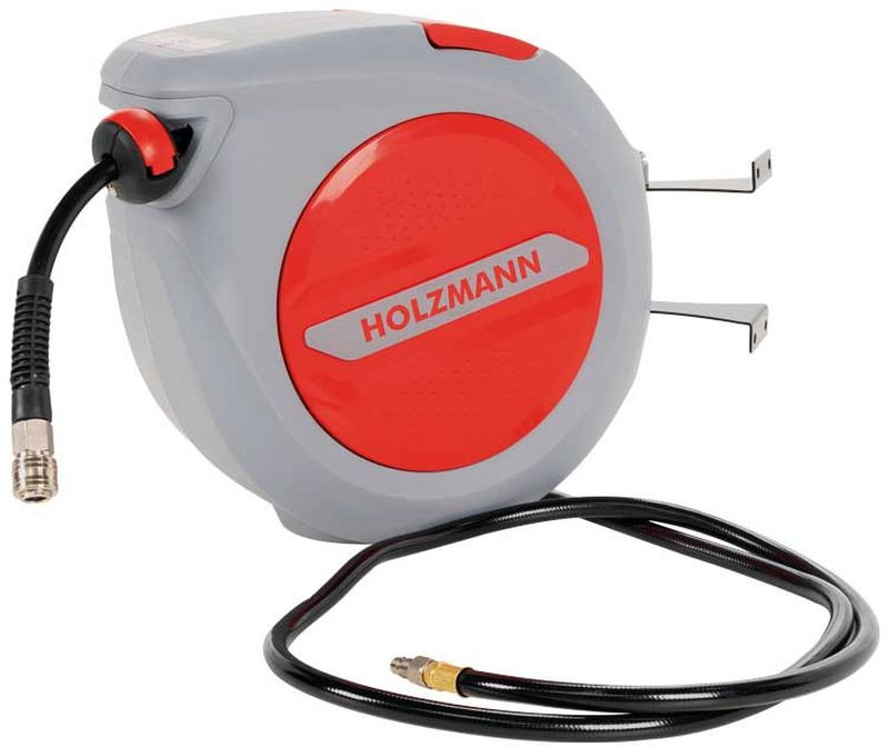 Enrouleur air comprimé HOLZMANN LSR20AIR est une solution pratique et sure pour les ateliers, garages et applications industrielles. Le mécanisme automatique d'enroulement s'active en tirant légerement sur le tuyau, l'enroulement est guidé par un systeme de guidage, et le boîtier en plastique robuste assure une longue durée de vie. La poignée située sur le dessus facilite le transport et la manipulation.