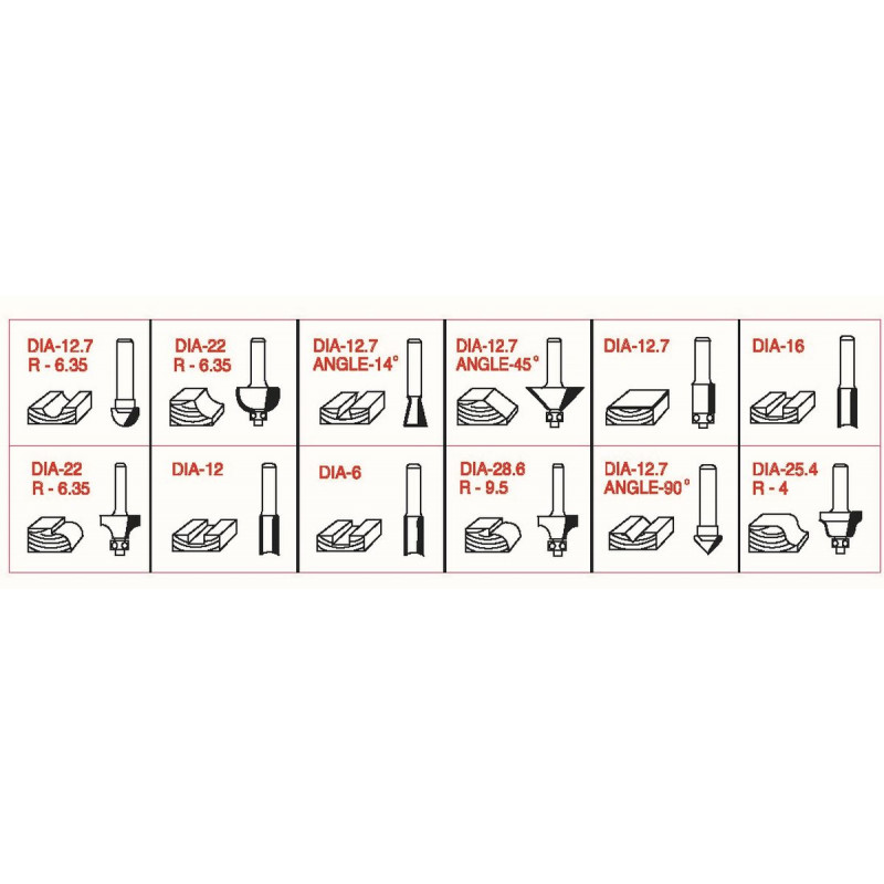 - 1× fraise a queue d’aronde (⌀ 12,7 mm, 14°)