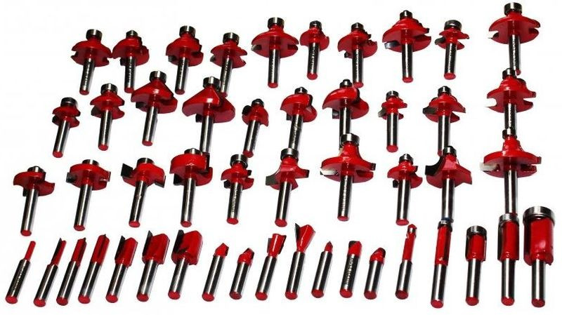 - 5× fraises a affleurer (3/8"×1/2", 3/8"×1", 1/2"×1/2", 1/2"×1", 3/4")