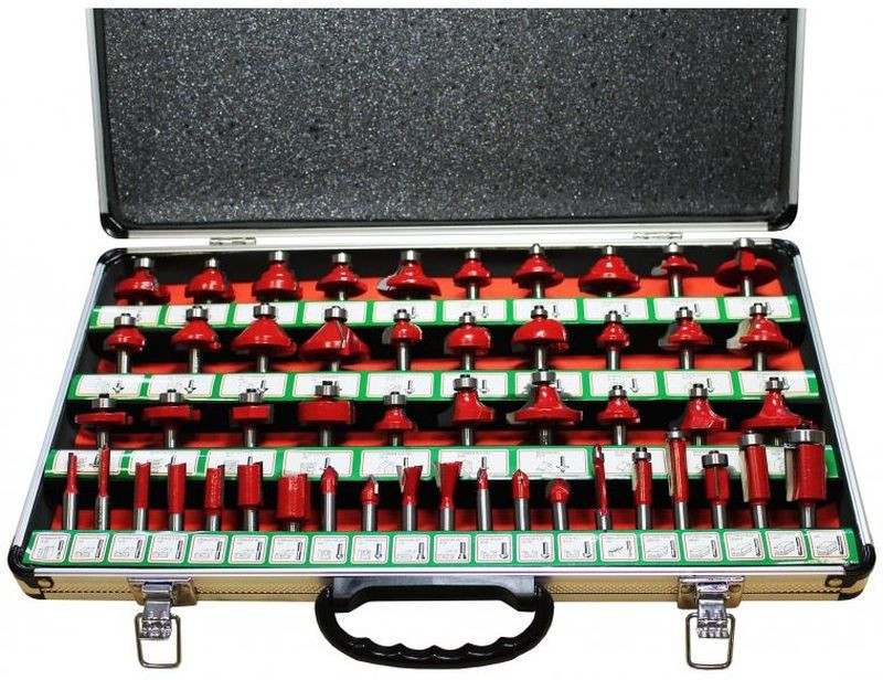 - 7× fraises a rainurer (3/16", 1/4", 5/16", 3/8", 1/2", 5/8", 3/4")