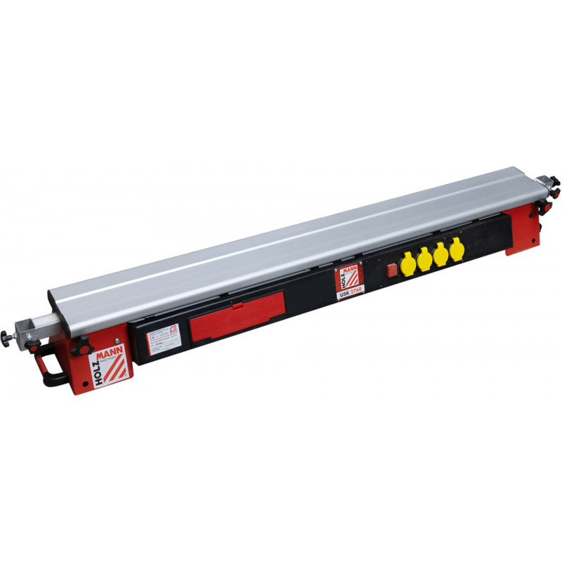 HOLZMANN USK2760 est une table de travail universelle robuste et polyvalente, conçue pour les scies a onglet, rabots portatives, perceuses a colonne et autres machines d’atelier. Sa construction stable offre une capacité de charge maximale de 150 kg et integre des butées réglables en hauteur pour le support précis de pieces longues, des pieds pliables facilitant le transport et le rangement, une table en aluminium de 1 500 mm extensible jusqu’a 2 750 mm, ainsi que 4 prises 230 V et un coffret de rangement pratique pour un confort, une stabilité et une sécurité de travail optimaux.