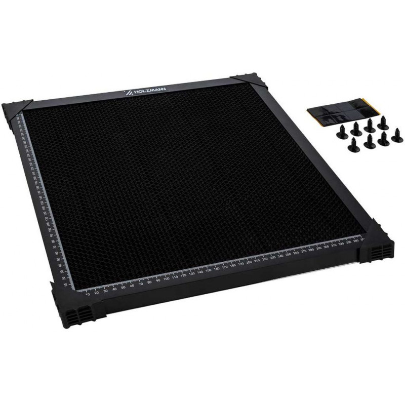 HOLZMANN CTF45PLWT est une table laser en nid d'abeilles, idéale comme support pour les pieces lors de l'utilisation du module laser 20 W (CTF45PLaser20W) sur la fraiseuse CNC HOLZMANN CTF45P_230V. Elle assure une fixation stable des pieces, réduit les réflexions du laser et permet une gravure et découpe précises.