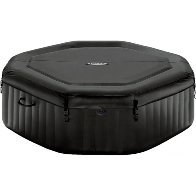 Spa gonflable INTEX PureSpa Jet & Bubble Deluxe Octagon haut de gamme au design élégant noir carbone transforme votre jardin ou terrasse en véritable espace bien-etre. Ce spa 4 places associe jets massants et diffuseurs a bulles, des technologies avancées de traitement de l’eau ainsi qu’un contrôle pratique via application mobile. Profitez d’un moment de détente, de relaxation et de confort tout au long de l’année.