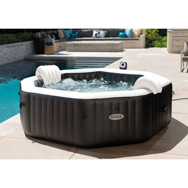 Le PureSpa Carbone 6 places INTEX, avec son design épuré octogonal, est la version la plus haut de gamme des spas gonflables INTEX.