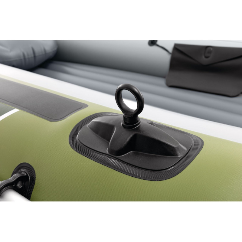 Le SuperStrong PVC garantit durabilité et résistance. Le plancher gonflable I-beam assure confort et solidité, tandis que les porte-cannes intégrés et la possibilité d’ajouter un moteur font de ce modele le compagnon parfait pour les pecheurs et amateurs d’aventures nautiques.