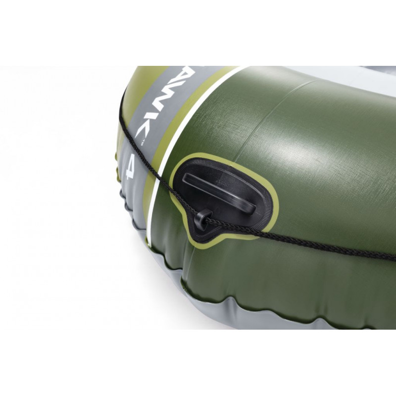 Fabriqué en SuperStrong PVC tres robuste, il résiste aux chocs, a l’abrasion et aux rayons du soleil. Sa construction a 3 chambres a air améliore la sécurité sur l’eau, incluant une chambre auxiliaire a l’intérieur de la coque principale. Le plancher gonflable avec technologie I-beam assure une meilleure stabilité et un confort accru en position assise ou debout. Des éléments pratiques tels que les supports de rames rotatifs, les porte-cannes intégrés, la corde de sécurité périphérique, la poignée robuste a la proue et la possibilité d’ajouter un moteur font du Seahawk 4 un bateau polyvalent pour toutes vos aventures nautiques.