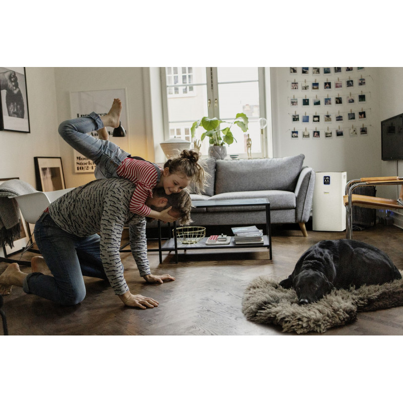 Une purification de l'air parfaite pour les pieces, les salons et les bureaux de grande taille : Le purificateur d'air AF 50 débarrasse l'air intérieur des allergenes, des polluants et des agents pathogenes grâce a son systeme de filtres multicouches. Il comporte également : un systeme de remplissage du charbon actif et un écran alphanumérique qui indique la concentration de l'air en particules PM2,5 en µg/m3, la qualité de l'air a l'aide d'un code couleur, la température et l'humidité relative. L'AF 50 se démarque également par sa minuterie, sa sécurité enfant, son mode nuit, son fonctionnement silencieux, son filtre efficace a 99,95 % contre les particules de 0,3 µm, et son capteur laser de grande qualité pour le mode automatique. Ainsi : Le mode automatique et la puissance s'adaptent automatiquement au niveau de pollution de l'air. La durée de vie du filtre est d'environ 1 an, en fonction de la pollution de l'air et de l'intensité de l'utilisation.