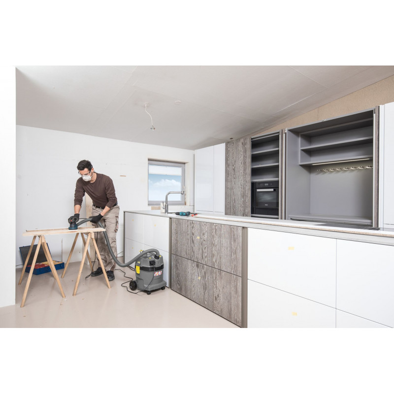 Les artisans apprécieront pleinement cet aspirateur NT 22/1 Ap Te qui est a la fois petit et puissant. Il est équipé d’une prise électrique pour les outils électroportatifs. Léger et compact, il est facile a transporter, efficace grâce a sa puissance d’aspiration pour les types de travaux de nettoyage faciles a moyens. Poussieres, saletés grossieres ou liquides : grâce au nettoyage semi-automatique du filtre et au filtre cartouche en PES insensible a l’humidité, cet aspirateur remplit son rôle de maniere fiable et minutieuse. Le flexible d’aspiration est connecté sur la tete de l’appareil permettant d’optimiser l’exploitation du volume du réservoir. L’aspirateur NT 22/1 Ap Te est a la fois facile a utiliser et polyvalent. Il constitue ainsi le compagnon idéal lors des travaux d’installation et de rénovation, lors du nettoyage d’un bâtiment et pour de nombreuses autres applications.