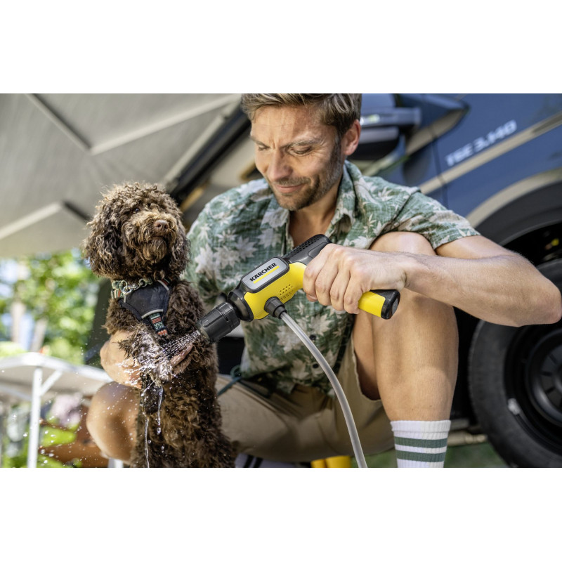 Le OC Handheld Compact est idéal pour nettoyer vélos, équipements de jardin et de camping, animaux ou points spécifiques sur les véhicules. La batterie se recharge via USB-C pour un usage flexible en déplacement. L’appareil n’est pas compatible avec les raccords standard de tuyau d’arrosage.