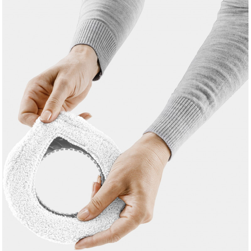 Les lingettes sont conçues pour s’adapter facilement aux disques rotatifs du robot et restent bien en place pendant le nettoyage. Elles peuvent etre utilisées des deux côtés pour prolonger leur durée de vie et, grâce a la bande élastique, leur manipulation et remplacement est tres simple. Les lingettes peuvent etre lavées en machine jusqu’a 40 °C sans assouplissant, garantissant une utilisation répétée et une hygiene fiable.