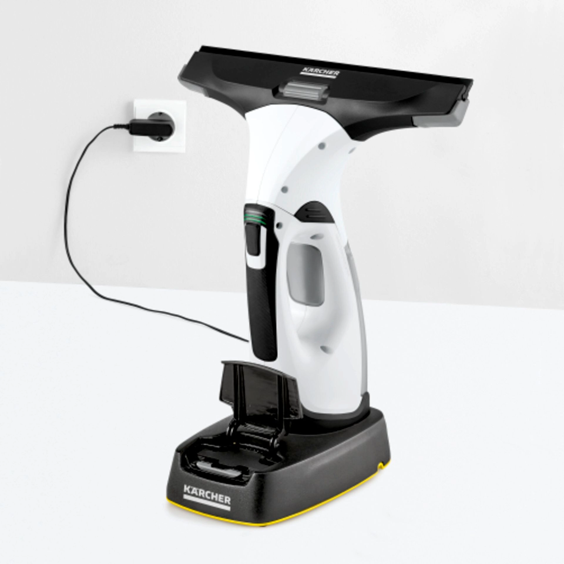 Les éléments de distance sur la buse d’aspiration garantissent des résultats parfaits jusqu’aux bords des vitres. Les composants souples de la poignée augmentent le confort et l’ergonomie lors de la prise en main. La station de charge peut etre utilisée pour recharger les batteries individuellement ou pour stocker le nettoyeur de vitres en toute sécurité.