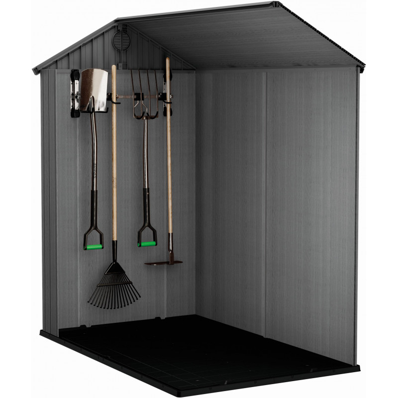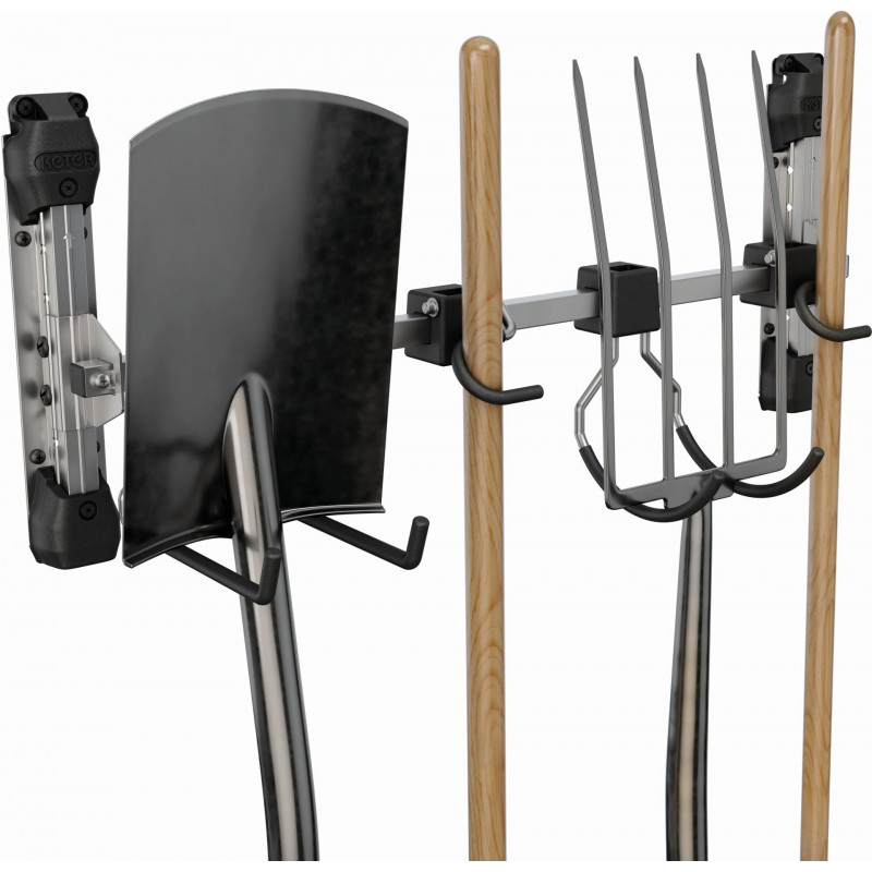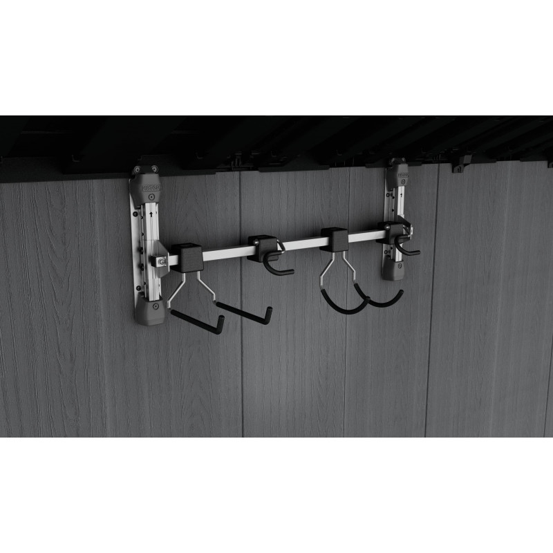 Ce support est compatible avec toutes les cabanes de jardin KETER (sauf la gamme Factor) et supporte une charge maximale de 36 kg – soit 9 kg par crochet.