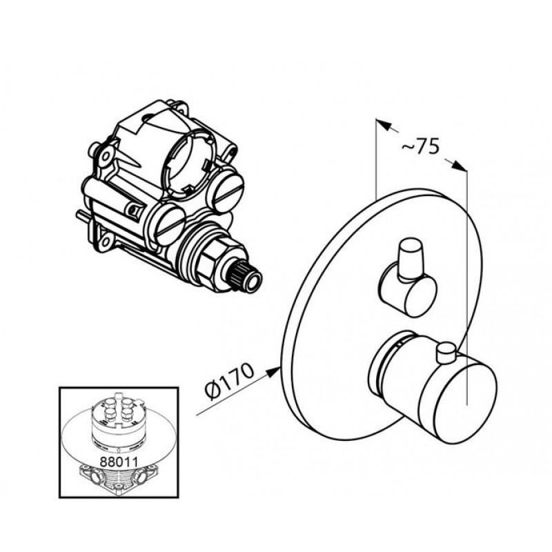 Pour kludi flexx.boxx 88011, avec robinet d'arret tete céramique, blocage eau chaude a 38 ° c, sans corps a encastrer, p-ix 18444/iicc