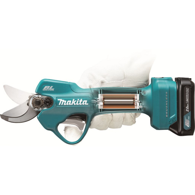 Makita UP100DZ Sécateur Li-ion CXT 12V, ohne Akku Z Moteur BL Coreless permet de réduire le diametre et le poids afin de réduire la fatigue. Réglage électronique de l’angle d’ouverture... Plus d'informations »