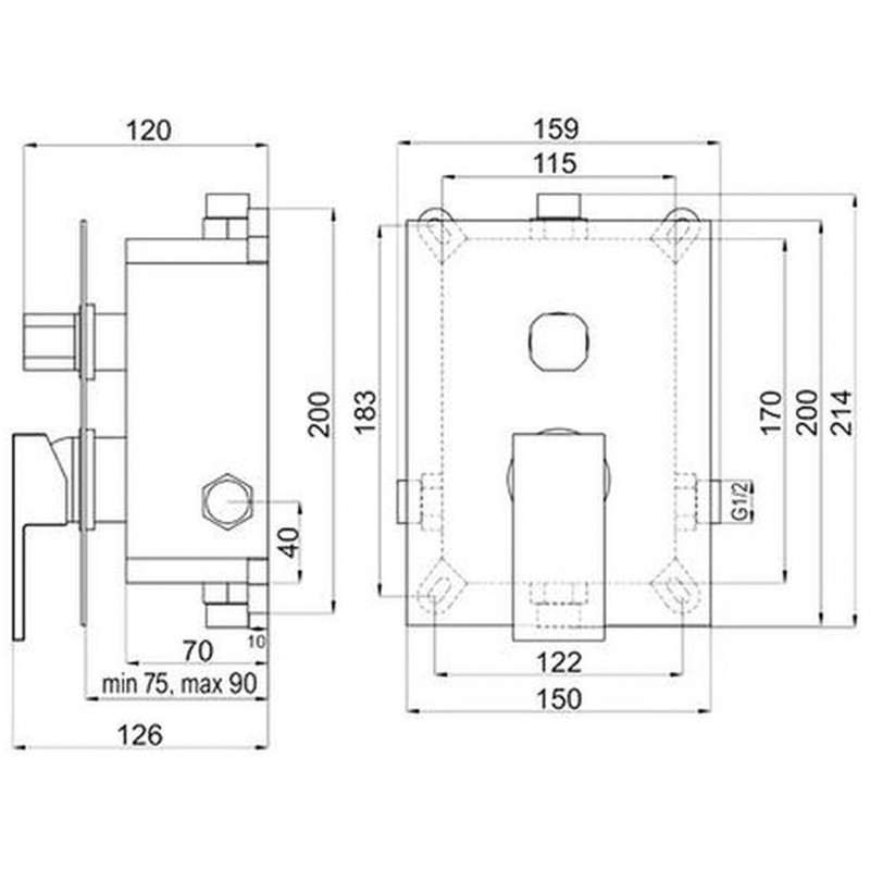 • Ce mitigeur comprend un corps encastré avec raccordement 1/2”