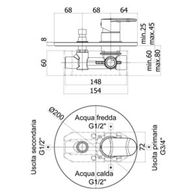 PAFFONI Candy mitigeur de douche encastré avec inverseur, chrome BLU183