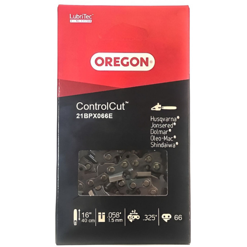 La chaîne comprend 66 maillons, ce qui en fait un choix idéal pour les tronçonneuses de puissance moyenne utilisées pour l’entretien du jardin, les travaux en foret ou la préparation du bois de chauffage. La qualité de la marque Oregon garantit des performances fiables et une grande résistance.