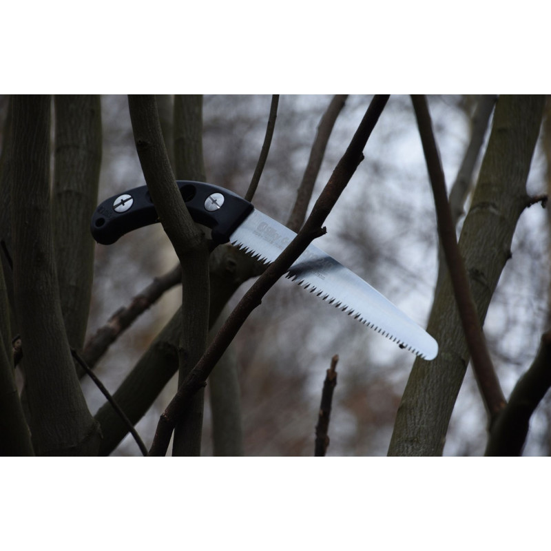 La poignée en caoutchouc est confortable, absorbe les vibrations et assure que l’avant-bras et la scie sont parfaitement équilibrés. La scie est facilement identifiable a ses boulons argentés lorsqu’elle est utilisée a côté de la Gomtaro a grosses dents.