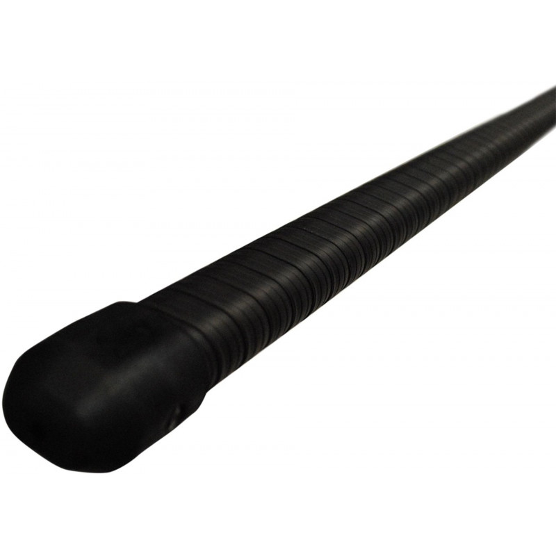 Les deux systemes de verrouillage (boutons poussoir et leviers) assurent un verrouillage stable et sur de la longueur souhaitée de la perche. L’élément inférieur de la perche est recouvert d’une bande caoutchouc pour assurer un confort de prise en main. Le tampon en bout de la perche la protege des chutes et chocs.
