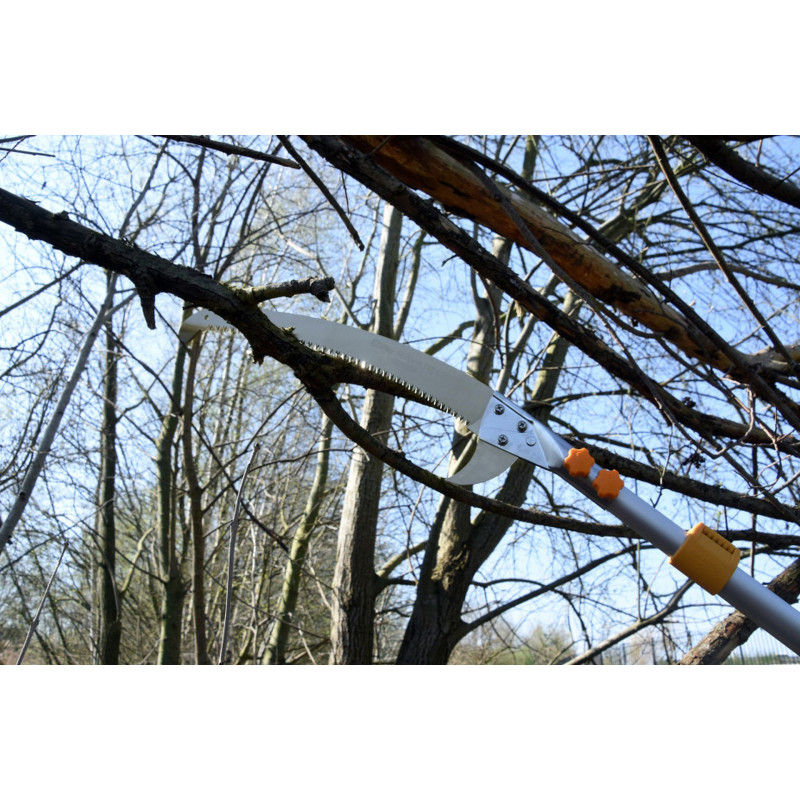 La perche en aluminium a section ovale permet un contrôle précis de la lame, apporte rigidité sur toute la longueur et minimise la flexion. La lame est équipée de deux faucilles :