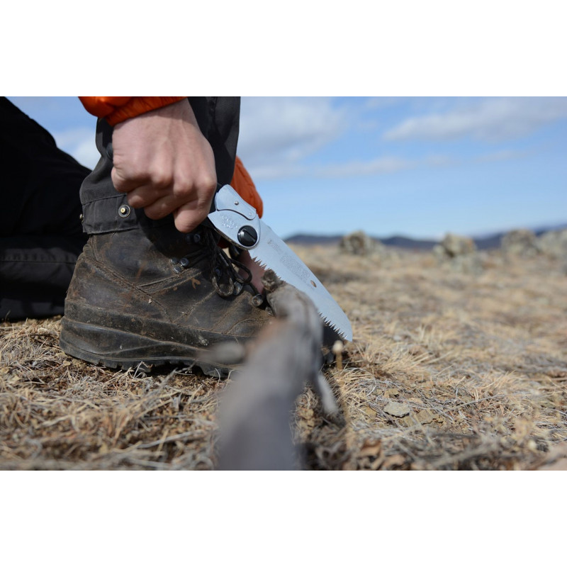 Lorsque la scie n’est pas utilisée, la lame se replie facilement grâce au levier de verrouillage. Les dents sont entierement protégées dans la poignée. Le déploiement est simple, meme avec des gants, grâce a l’encoche prévue a cet effet. La lame peut etre verrouillée en 2 positions.
