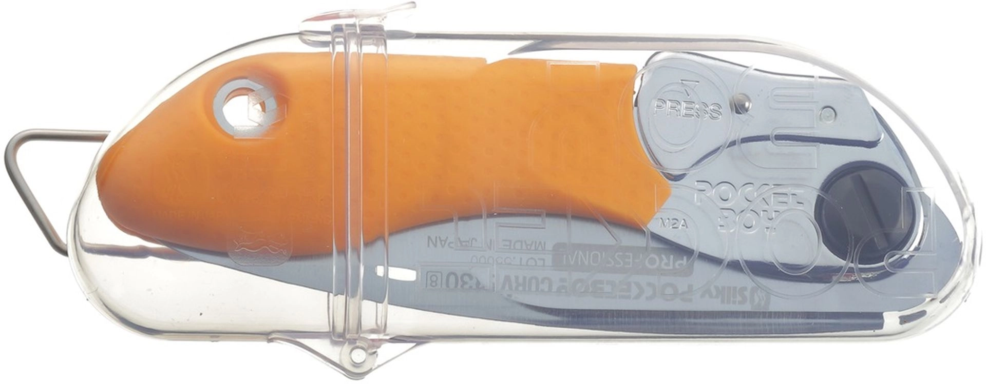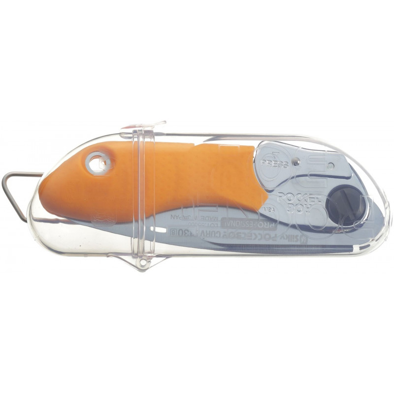 La scie peut etre portée a la ceinture dans son étui rigide transparent ou rangée dans une boîte a outils. Ses excellentes capacités de coupe lui valent le surnom de « Petite Géante ».