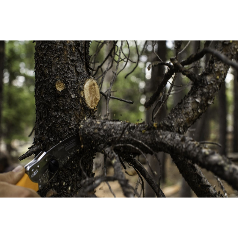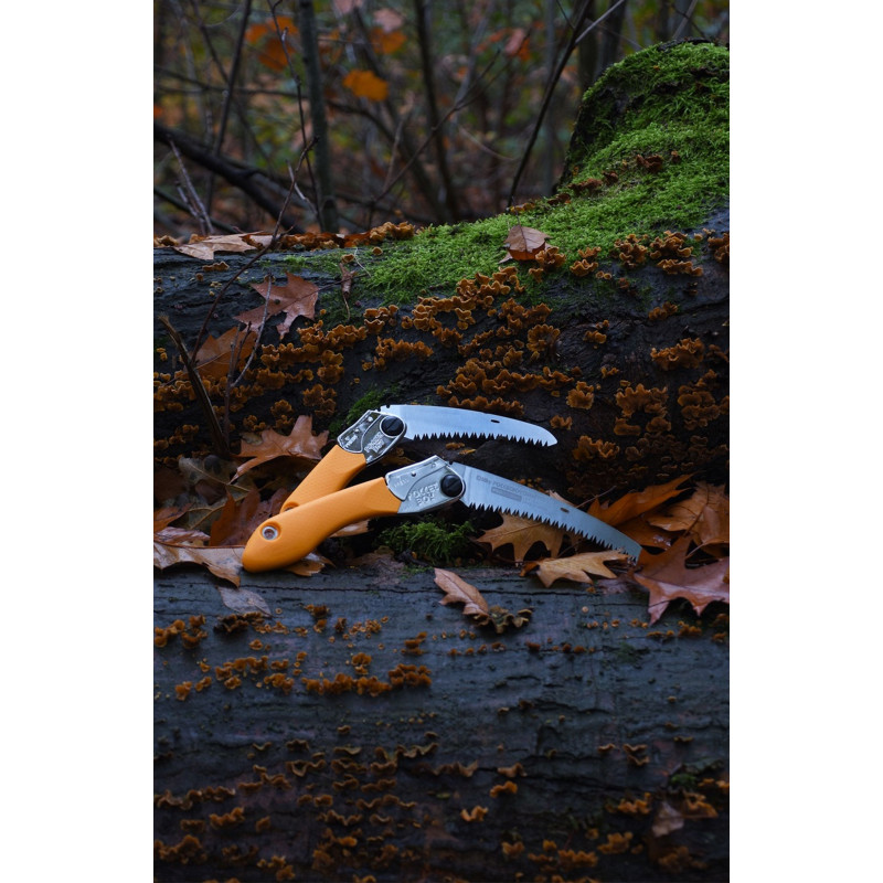 Lorsque la scie n’est pas utilisée, la lame se replie facilement grâce au levier de verrouillage. Les dents sont entierement protégées dans la poignée. Le déploiement est simple, meme avec des gants, grâce a l’encoche prévue a cet effet. La lame peut etre verrouillée en 2 positions.