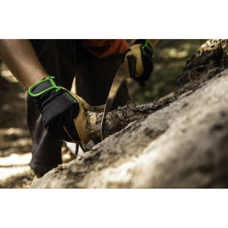 Les travaux plus importants, comme l’abattage d’arbres, ne posent aucun probleme a la Sugoi. La lame parfaitement courbée est fabriquée dans un alliage spécial qui la rend a la fois robuste et flexible. La Sugoi scie rapidement et sans vibration, laissant une coupe nette favorisant une bonne cicatrisation de l’arbre.