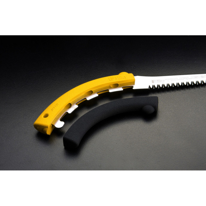 Toutes les scies de la série Tsurugi sont légeres et équipées d’un fourreau en aluminium (adapté aux droitiers et aux gauchers) avec sangles amovibles. Le fourreau dispose de galets de protection pour préserver la lame des chocs, et sa partie inférieure est ouverte pour laisser s’évacuer l’humidité et la sciure.