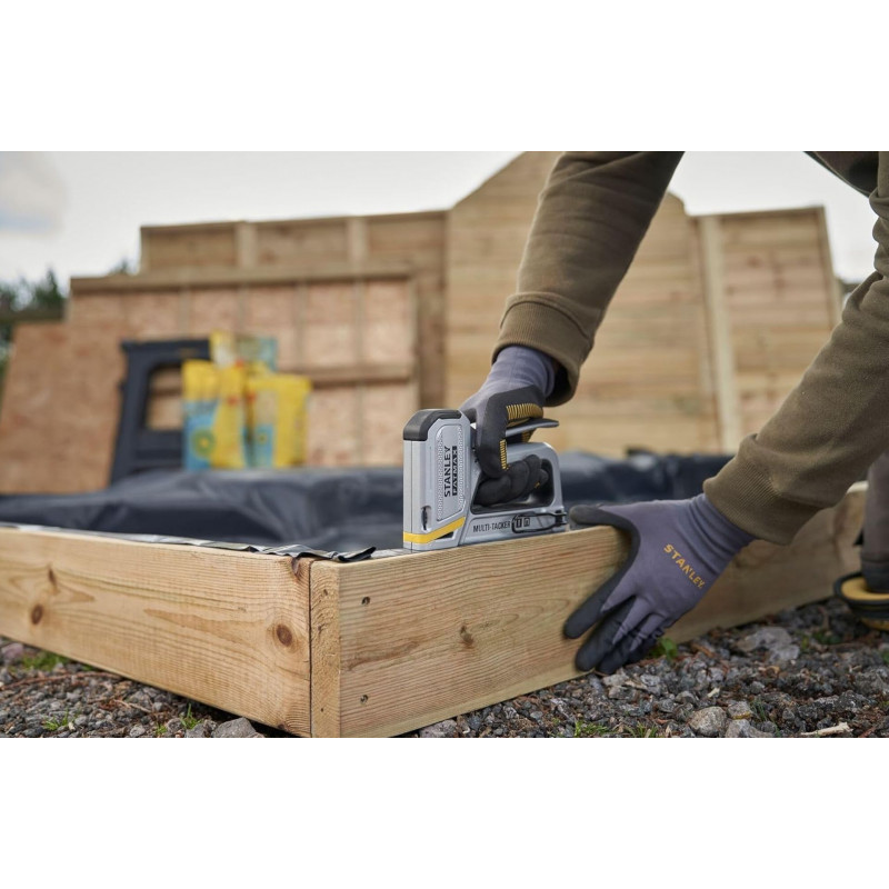 - Compatible avec les agrafes Stanley type G (6–14 mm) et les clous type J (12–15 mm)