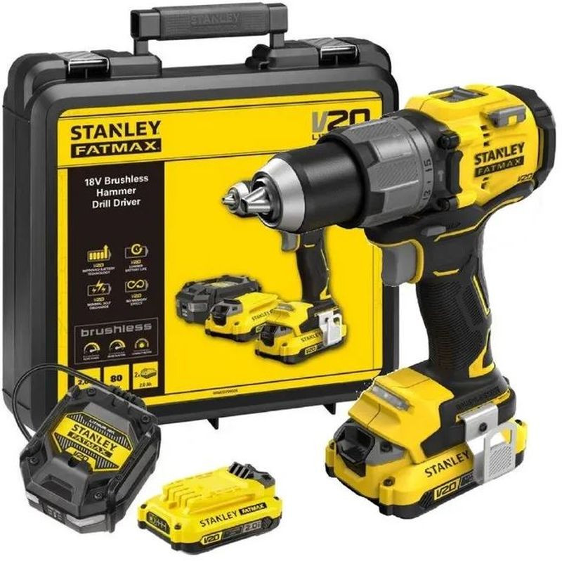 Stanley FatMax SFMCD725D2K-QW : Perceuse-visseuse sans fil 18V Brushless (80 Nm) – 2× 2,0 Ah, avec chargeur et mallette