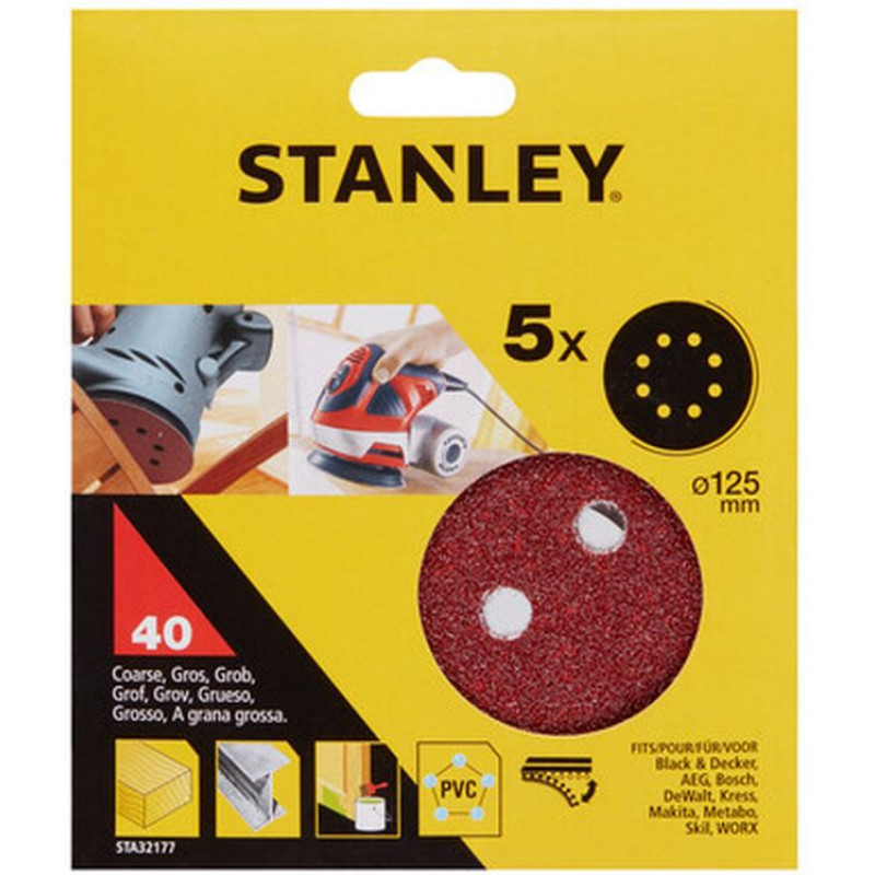 Stanley STA32177-XJ Disque abrasif 125mm, P40, 5 pieces
