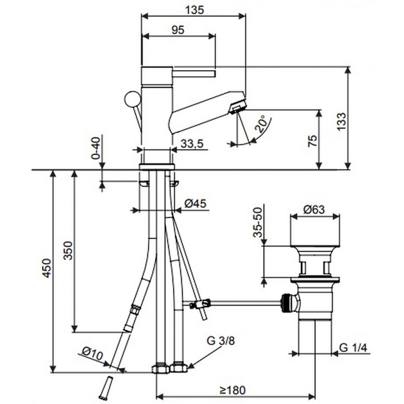 • Hauteur d'installation du bord inférieur de la sortie du robinet 75 mm